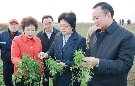 3日下午,李斌一行首先來到位于五河縣朱頂鎮(zhèn)的全國最大的紫花苜蓿生產(chǎn)基地——秋實(shí)草業(yè)有限公司調(diào)研。在市委書記周春雨、代市長白金明的陪同下,李斌深入田間察看牧草長勢(shì),當(dāng)她得知牧草品質(zhì)上乘,草場(chǎng)機(jī)械化作業(yè)達(dá)到世界先進(jìn)水平時(shí),不住地點(diǎn)頭稱贊。調(diào)研中,李斌和在這里打工的女拖拉機(jī)手、朱頂鎮(zhèn)小柳村村民劉小紅拉起家常,希望她通過自己的努力過上更加幸福美好的生活。