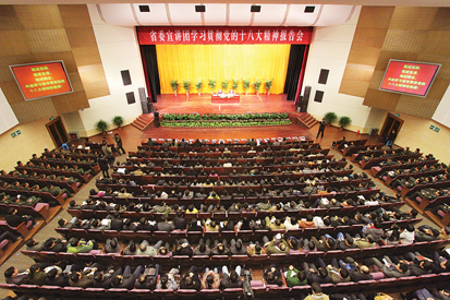 就深入學(xué)習(xí)宣傳貫徹黨的十八大精神,周春雨強(qiáng)調(diào),要在深刻理解、把握精髓上下功夫。各級(jí)各部門和廣大干部群眾要按照中央提出的“七個(gè)深刻領(lǐng)會(huì)”的要求,堅(jiān)持不懈地學(xué)深學(xué)透,把握實(shí)質(zhì),融會(huì)貫通,切實(shí)把思想和行動(dòng)統(tǒng)一到十八大精神上來。要在廣泛宣傳、凝聚力量上下功夫。要以領(lǐng)導(dǎo)干部為重點(diǎn),精心安排好各級(jí)干部的培訓(xùn)、輪訓(xùn),真正做到以十八大精神武裝頭腦、指導(dǎo)實(shí)踐、推動(dòng)工作。各地區(qū)各部門的主要領(lǐng)導(dǎo)既要身體力行,帶頭學(xué)習(xí),更要帶頭宣傳,帶頭宣講,確保集中宣講活動(dòng)全覆蓋,使學(xué)習(xí)教育覆蓋到各個(gè)社會(huì)團(tuán)體,各級(jí)宣傳輿論部門要精心策劃集中報(bào)道,積極營造學(xué)習(xí)貫徹十八大精神的濃厚氛圍。